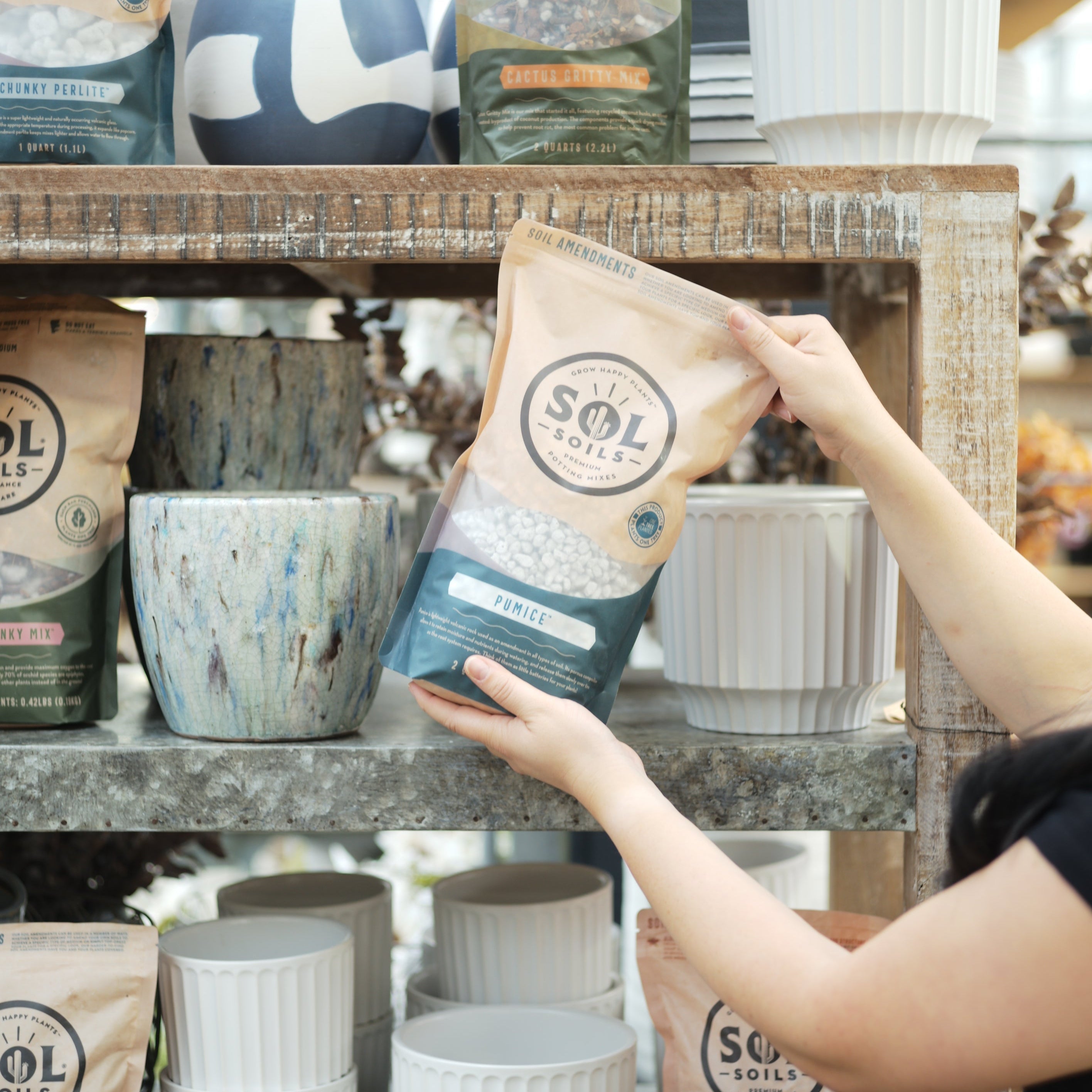 Pumice (filtered 3/8" to 1/4" in size) is relatively lightweight volcanic rock used as an amendment in all types of soil. Its porous composition allows it to retain moisture and nutrients during watering, and release them slowly over time as the root system requires. Think of these components as little batteries for your plants!